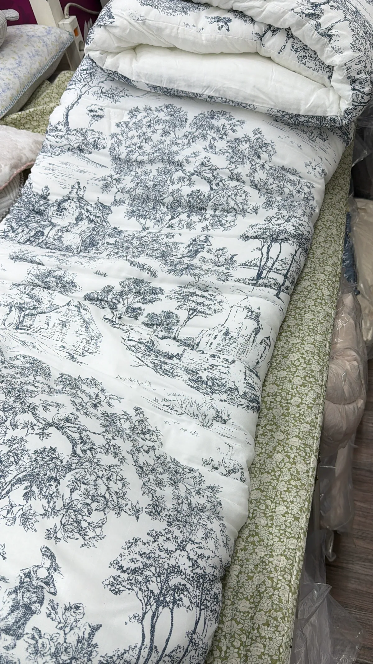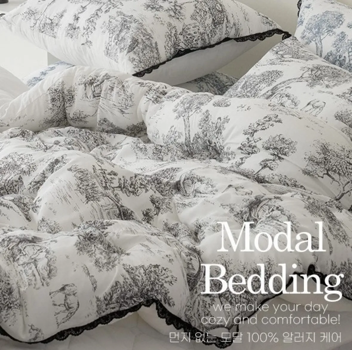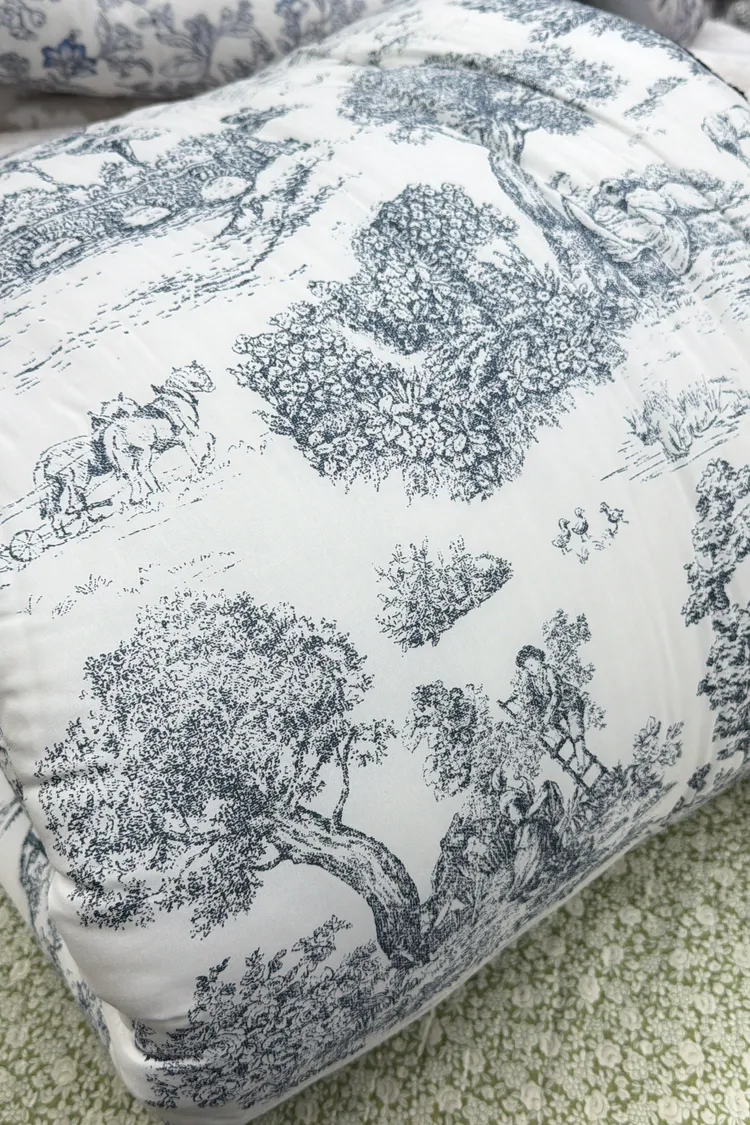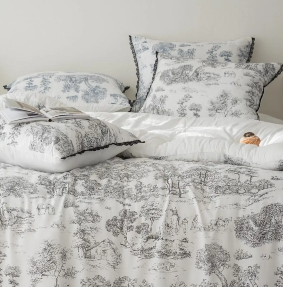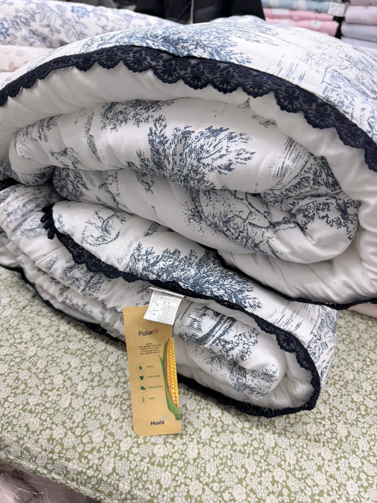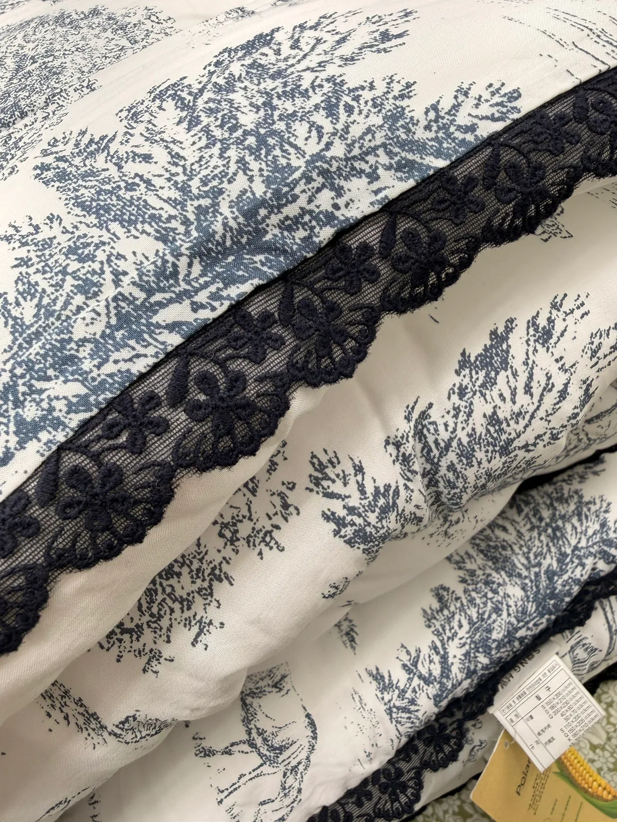 棉被四邊以托蕾蕾絲點綴,展現法式浪漫的經典美學。