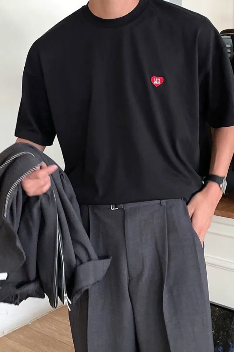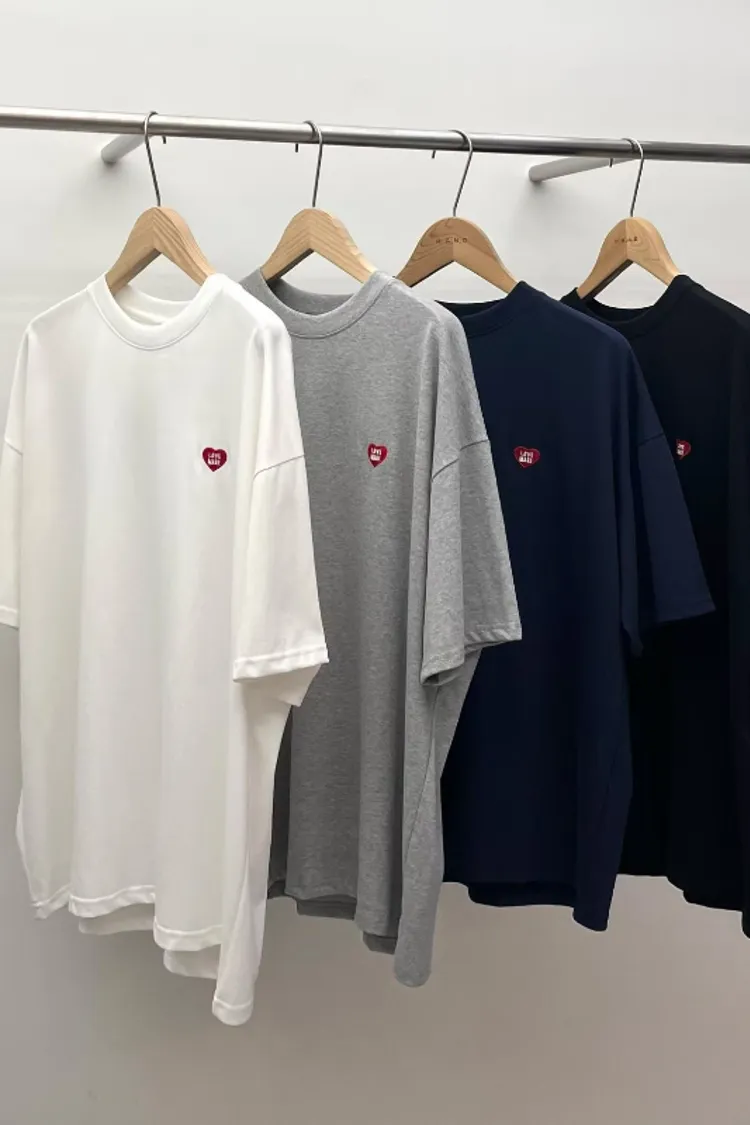 🇰🇷心型刺繡短TEEH牌平替款胸前love made紅色愛心刺繡細節。版型是寬鬆落肩,俐落又好搭。✔️ 愛心刺繡設計✔️ 寬鬆版型,日常穿搭很好搭✔️ 單穿就有型,搭西裝褲、牛仔褲都OK✔️ 男女都能穿的韓系簡約風顏色:黑 / 深藍 / 白/灰色尺寸cm: 衣長71肩寬61胸寬64