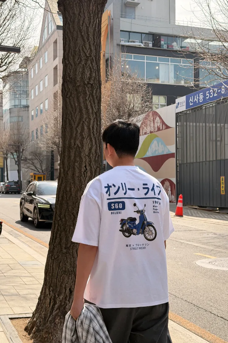 背後藍色復古機車印花,遠看就很有街頭感。正面只有小logo點綴,不會太花,前面乾淨、背面有重點,穿起來很有層次。✔ 日系復古機車印花✔ 正面簡約小logo✔ 寬鬆版型好搭不挑身形✔ 單穿或搭外套都很好看顏色:顏色:黑 /白尺寸cm: 衣長73肩寬59胸寬61材質:雙羅紋針織布