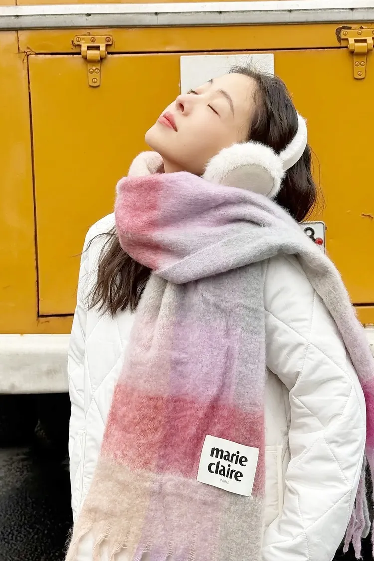 🇰🇷 marie claire 迷你棉花糖格紋圍巾冬季折扣中!這款格紋圍巾的配色讓人聯想到棉花糖。它是上一季暢銷的蓬鬆格紋圍巾的迷你版。Marie Claire 的品牌標誌以其柔和的色彩增添了一絲精緻優雅。顏色:藍色/粉色/紫色尺寸cm:長188寬31材質人造纖維100%