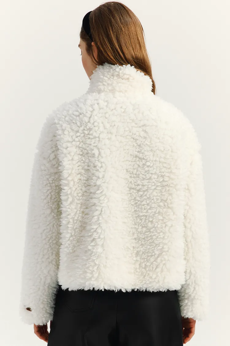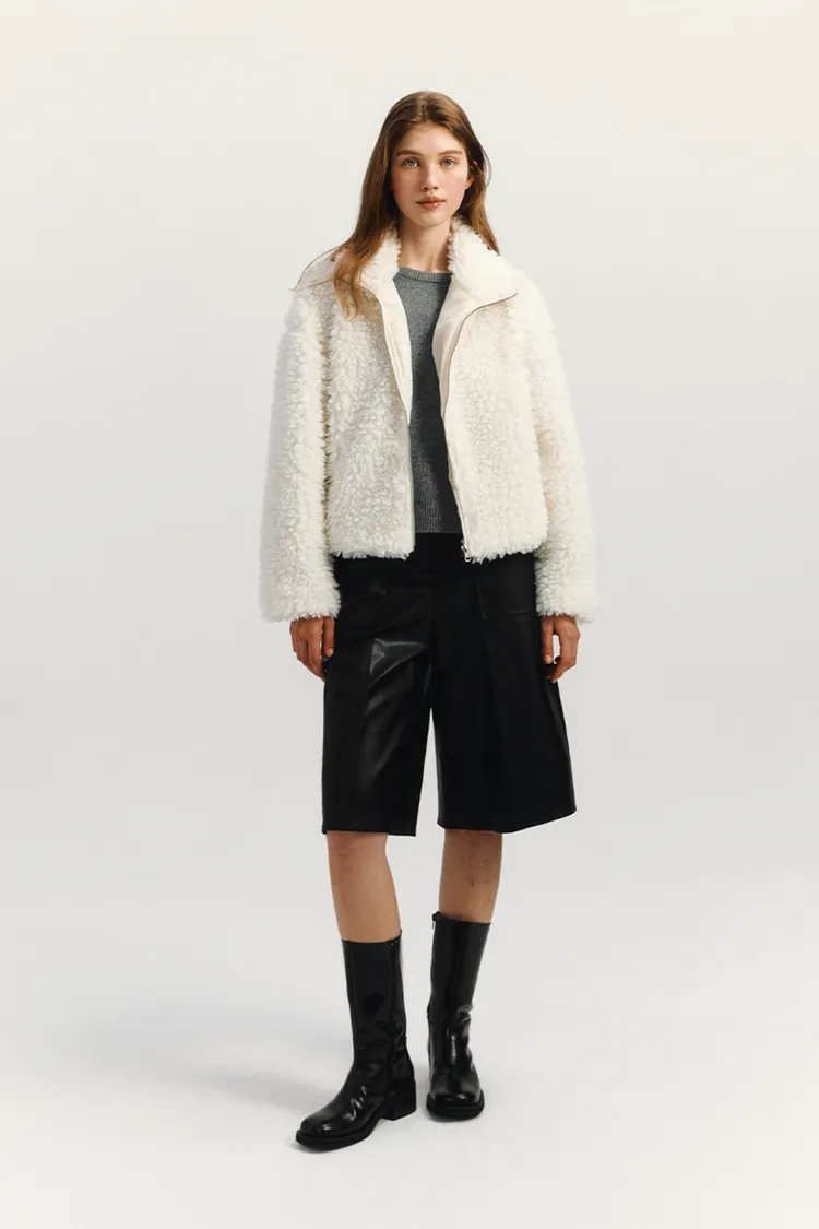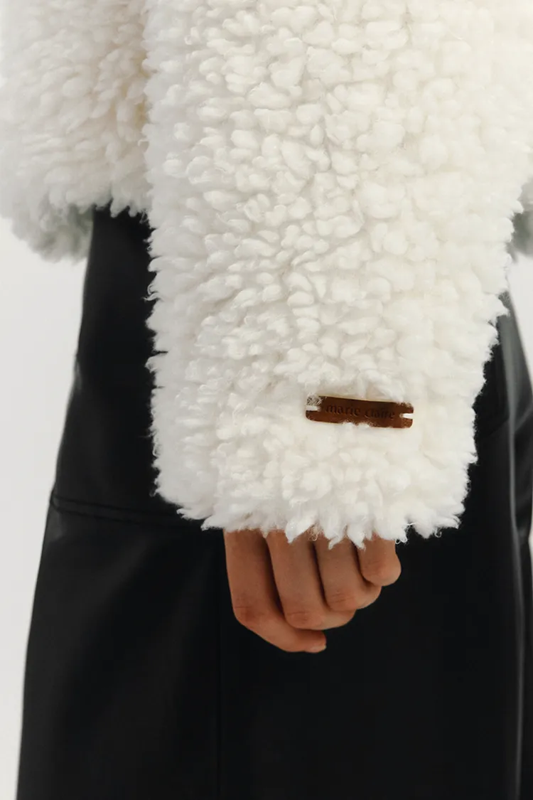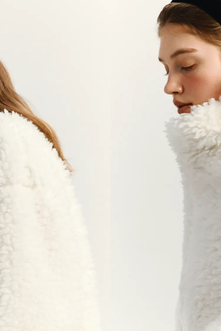 🇰🇷 marie claire 波格爾毛絨高領外套波格爾毛絨高領外套採用半寬鬆和短版設計,非常適合日常穿著。它內襯齊全,保暖性極佳,是秋冬季的理想選擇。正面拉鍊設計方便穿脫,兩側口袋提供便利的收納空間。左袖下擺的Marie Claire皮革標籤更添時尚氣息。顏色:象牙白色尺寸cm:衣長52肩寬61胸寬58袖長48材質 聚脂纖維100%⚠️由於毛絨的長度不同,縫製過程中可能會有少量毛絨被塞入縫線內,這是布料的特性,並非瑕疵。